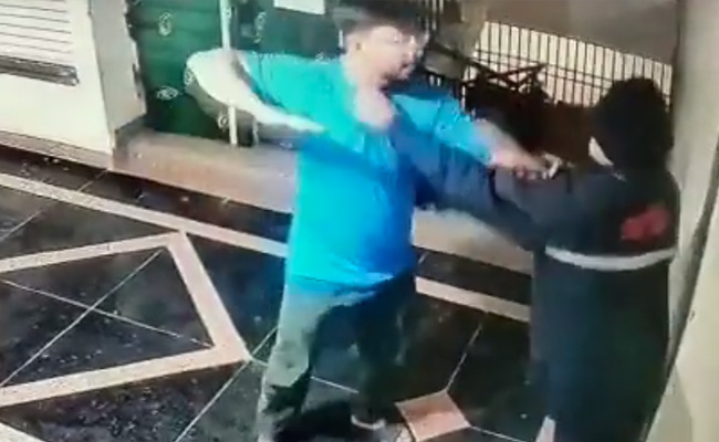 गाजियाबाद के विंडसर पैराडाइज अपार्टमेंट परिसर के सीसीटीवी फुटेज में एक व्यक्ति और एक सुरक्षा गार्ड एक दूसरे को घूंसा मारने से पहले कुछ सेकंड के लिए बहस करते हुए देखे जा सकते हैं, साथ ही एक महिला उस पुरुष को लड़ने से रोकने की कोशिश करती नजर आती है.