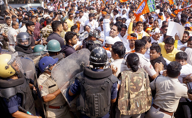 पुलिस ने दावा किया कि प्रदर्शनकारियों ने उन पर बोतलें, अंडे फेंके और पथराव किया. जिसके बाद उसने भीड़ को खदेड़ने के लिए लाठीचार्ज किया. झड़प में कई सुरक्षाकर्मी और कार्यकर्ता घायल हो गए.