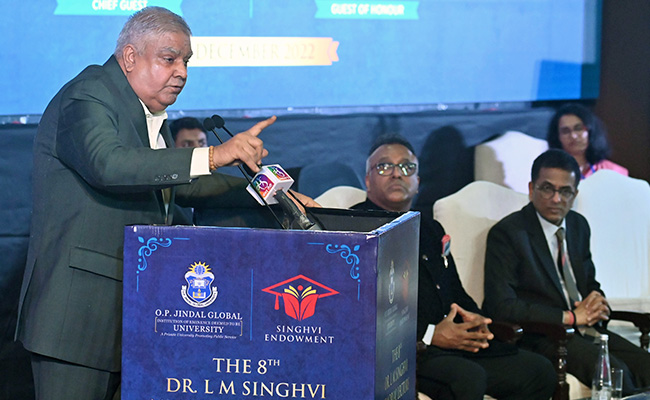 भारत के मुख्य न्यायाधीश डी वाई चंद्रचूड़ की उपस्थिति में यहां एल एम सिंघवी स्मृति व्याख्यान को संबोधित करते हुए धनखड़ ने रेखांकित किया कि संविधान की प्रस्तावना में ‘‘हम भारत के लोग'' का उल्लेख है और संसद लोगों की इच्छा को दर्शाती है. उन्होंने कहा कि इसका मतलब है कि शक्ति लोगों में, उनके जनादेश और उनके विवेक में बसती है. धनखड़ ने कहा कि 2015-16 में संसद ने एनजेएसी अधिनियम को पारित कर दिया. उन्होंने कहा, “हम भारत के लोग-उनकी इच्छा को संवैधानिक प्रावधान में बदल दिया गया. जनता की शक्ति, जो एक वैध मंच के माध्यम से व्यक्त की गई थी, उसे खत्म कर दिया गया. दुनिया ऐसे किसी कदम के बारे में नहीं जानती.”