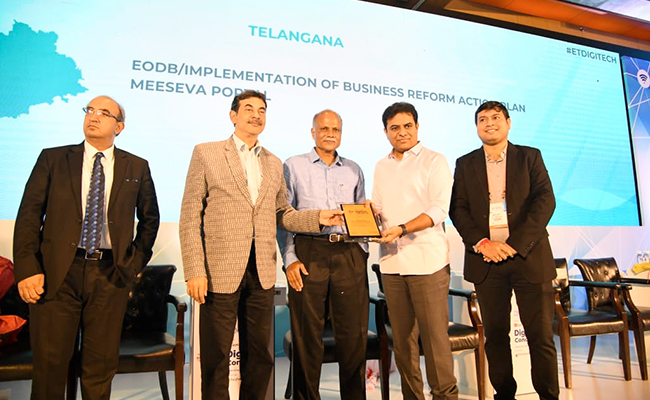 इकोनॉमिक टाइम्स ने तेलंगाना को ईज ऑफ डूइंग बिजनेस के कार्यान्वयन के लिए सर्वश्रेष्ठ राज्य के रूप में सम्मानित किया गया है. नई दिल्ली में इकोनॉमिक टाइम्स द्वारा आयोजित डिजी-टेक कॉन्क्लेव 2022 के तीसरे संस्करण में श्री केटी रामा राव, आईटी, उद्योग, नगर प्रशासन मंत्री ने इस पुरस्कार को प्राप्त किया है. इकनॉमिक टाइम्स द्वारा इस पुरस्कार के लिए तेलंगाना के मुख्यमंत्री के चंद्र शेखर राव का चयन किया गया, उनके लिए आईटी विभाग के कैबिनेट मंत्री के टी रामा राव ने यह पुरस्कार राजधानी में आयोजित भव्य समारोह में बृहस्पतिवार को प्राप्त किया.