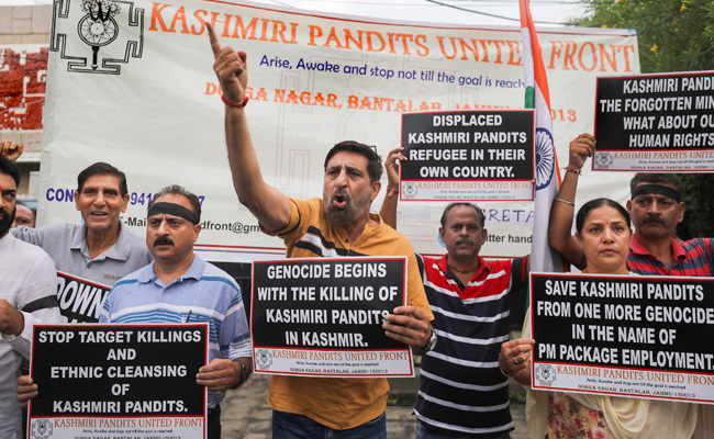 जम्मू-कश्मीर में आतंकवादियों द्वारा हाल ही में कई टारगेट किलिंग को अंजाम देने के बाद, 10 कश्मीरी पंडित परिवार डर के कारण शोपियां जिले में स्थित अपना गांव छोड़कर जम्मू पहुंच गए हैं. चौधरीगुंड गांव के लोगों ने कहा कि हाल के आतंकवादी हमलों ने उन पंडितों के बीच एक प्रकार का भय पैदा कर दिया है, जो 1990 के दशक में आतंकवाद के सबसे कठिन दौर में भी कश्मीर में रहते थे और उन्होंने अपना घर नहीं छोड़ा था.