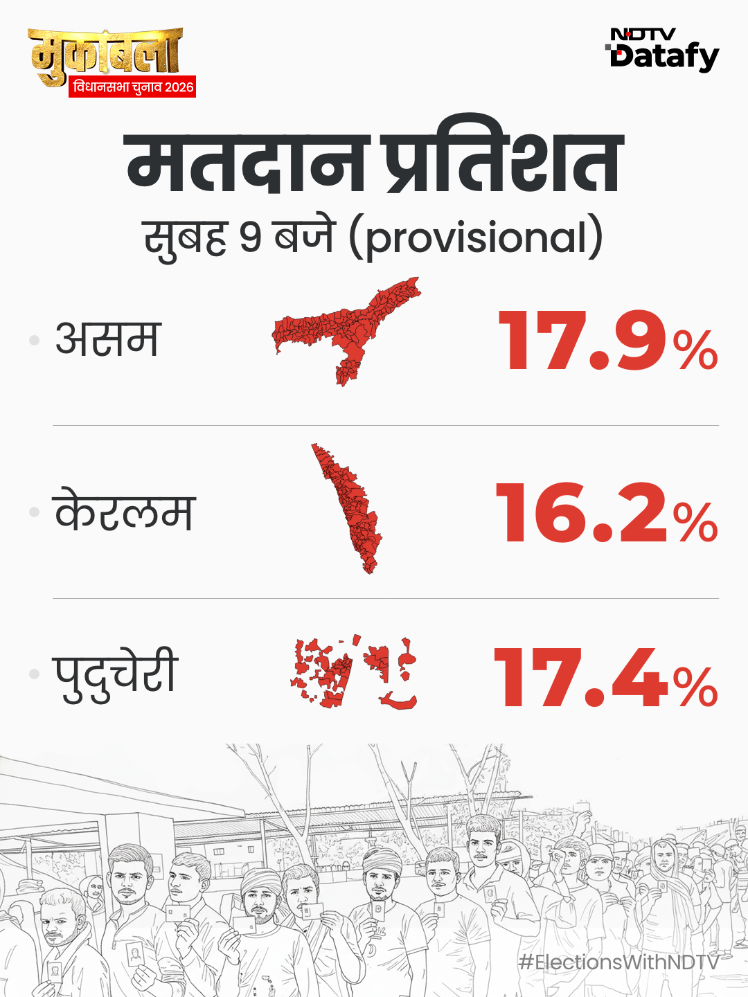 ये रहा असम,केरल, पुडुचेरी का सुबह 9 बजे तक का वोटिंग प्रतिशत