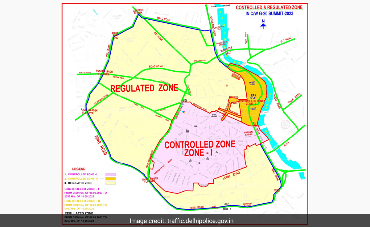 पूरी नई दिल्ली जिला एक 'नियंत्रित क्षेत्र- I' होगा, जबकि रिंग रोड (महात्मा गांधी मार्ग) के अंदर का क्षेत्र शुक्रवार सुबह 5 बजे से रविवार आधी रात तक 'विनियमित क्षेत्र' माना जाएगा. पुलिस ने आश्वासन दिया है कि हवाई अड्डे, नई दिल्ली और पुरानी दिल्ली रेलवे स्टेशनों तक लोग पहुंच सकेंगे, लेकिन यातायात प्रतिबंधों के कारण उन्हें इन स्थानों पर पहुंचने के लिए लंबा समय लग सकता है. दिल्ली ट्रैफिक ने पुलिस हवाई अड्डे तक पहुंचने के लिए दिल्ली मेट्रो की एयरपोर्ट एक्सप्रेस लाइन और अन्य सभी रेलवे स्टेशनों के लिए दिल्ली मेट्रो का उपयोग करने की सलाह दी है.