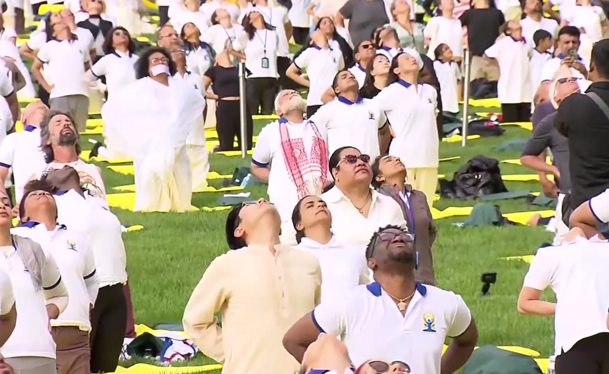 पीएम मोदी ने कहा कि योग भारत की पुरानी संस्कृति है और इस पर किसी का कॉपीराइट नहीं है. योग कार्यक्रम UN के नॉर्थ लॉन के गार्डन में हुआ. इसमें न्यूयॉर्क के मेयर एरिक एडम, शेफ विकास खन्ना, संयुक्त राष्ट्र महासभा के अध्यक्ष साबा कोरोसी, हॉलीवुड स्टार रिचर्ड गैरी शामिल हुए.