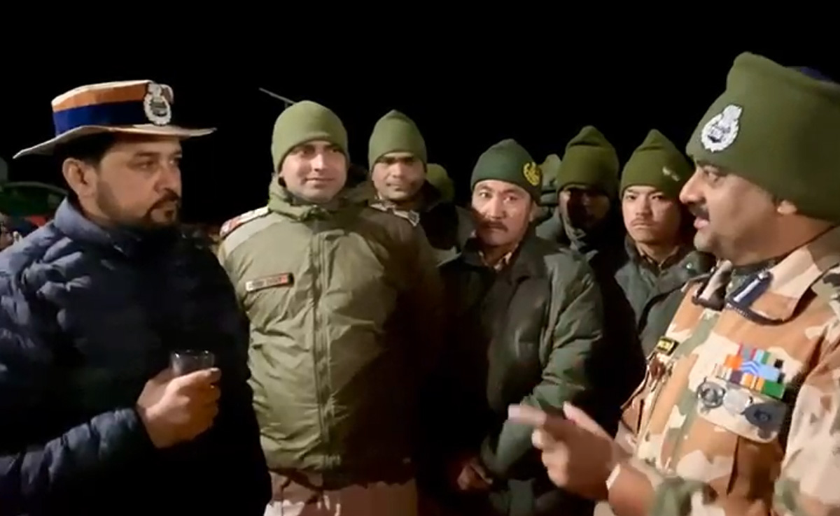 केंद्रीय मंत्री अनुराग ठाकुर ने बुधवार रात लेह में भारत-चीन सीमा पर 15,000 फीट की ऊंचाई पर मुस्तैद आईटीबीपी जवानों से मुलाकात की. इस दौरान केंद्रीय मंत्री वहां जवानों से काफी देर तक बात करते हुए नजर आए. केंद्रीय मंत्री ने जवानों से बात करते हुए उनके अनुभवों का जाना. अनुराग ठाकुर ने कहा कि हमारे जवानों का जोश देखकर पता चलेगा कि वो कितने मुस्तैदी और जोश के साथ भारत को सुरक्षित रखते हैं,.