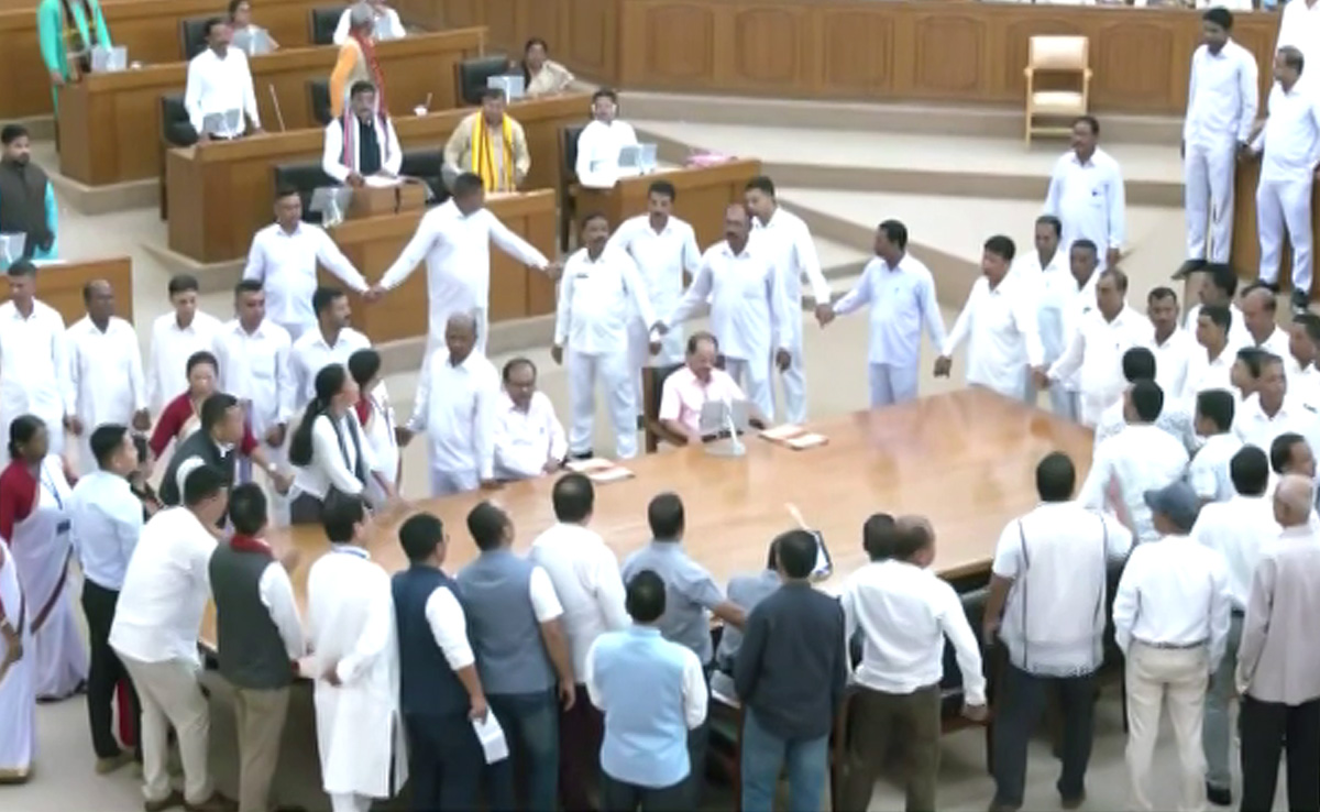 जब राज्य के वित्त मंत्री प्रणजीत सिंघा रॉय ने 2023-24 के लिए वार्षिक बजट पेश करना शुरू किया, तभी विपक्षी विधायकों ने नारे लगाने शुरू कर दिए. जिसकी वजह से विधानसभा में काफी देर तक हंगामा होते रहा. सभी विधायक एक चेन बनाकर खड़े हो गए और कुछ टेबल के करीब पहुंच गए.