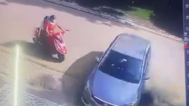 घटना स्थल के वीडियो में महिला और उसकी बेटी स्कूटर पर जाती हुई दिखाई देती हैं. इसी बीच विपरीत दिशा से अनियंत्रित तेज रफ्तार कार सड़क पर आती है और स्कूटर को जोरदार टक्कर मारती हुई दिखती है.