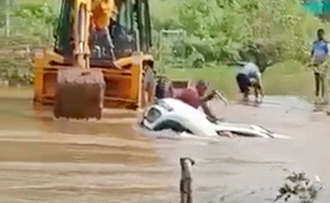 स्थानीय लोगों ने एक अर्थमूवर से रस्सी बांधी और उसके सहारे कार को पकड़ा. चूंकि कार के गेट नहीं खुल रहे थे इसलिए उन्होंने उसकी विंडशील्ड को किसी चीज से प्रहार करके तोड़ दिया और कार में फंसे दोनों व्यक्तियों को बाहर निकाल लिया. इस घटना का वीडियो वायरल हो गया है. हालांकि घटना का अधिक विवरण अब तक उपलब्ध नहीं है.