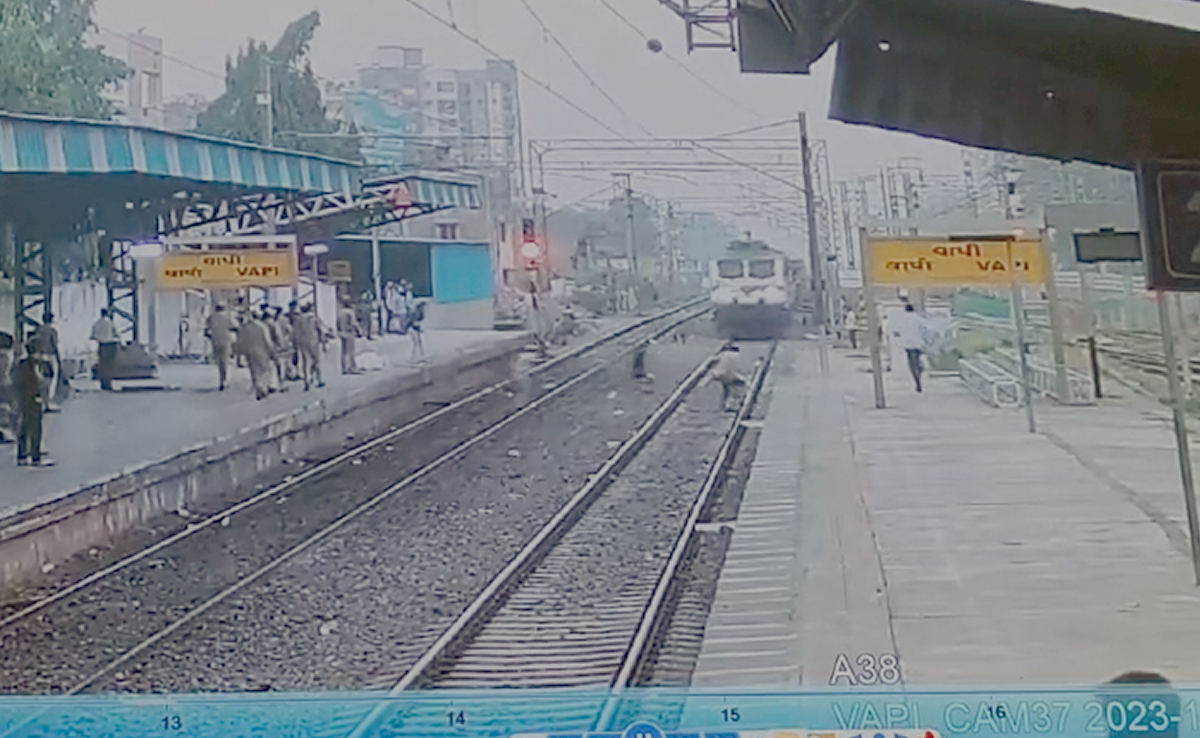 अक्सर रेलवे ट्रैक पार करना असुरक्षित माना जाता है, ऐसे में हमेशा लोगों को देखभाल कर ही ट्रैक पार करने की सलाह दी जाती है. जरा सी लापरवाही से इंसान की जान पर बन आती है. गुजरात के रेलवे वापी स्टेशन पर जवान की हिम्मत की वजह एक हादसा होते होते बच गया. दरअसल एक बुजुर्ग पटरियों को पार करते हुए नीचे गिर गए, तभी उसी ट्रैक पर तेज रफ्तार में ट्रेन आ रही थी. ट्रेन को आते देख जीआपीएफ जवान तुरंत ट्रैक की तरफ दौड़ा और उसने वक्त रहते बुजुर्ग की जान बचा ली.