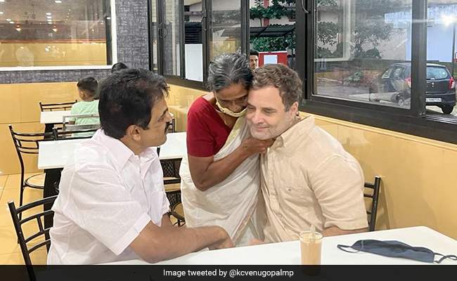 कांग्रेस नेता राहुल गांधी (Rahul Gandhi) केरल के वायनाड के दौरे (Wayanad Visit) पर हैं. इस दौरान राहुल गांधी एक बुजुर्ग महिला को अपनी थाली में से भोजन पेश करते हैं और फिर उस बुजुर्ग महिला को गर्मजोशी से गले भी लगाते हैं. कांग्रेस सांसद एक कैफे में पार्टी के वरिष्ठ नेता केसी वेणुगोपाल के साथ बैठे थे, जब दिल को छू लेने वाला पल कैमरे में कैद हो गया.