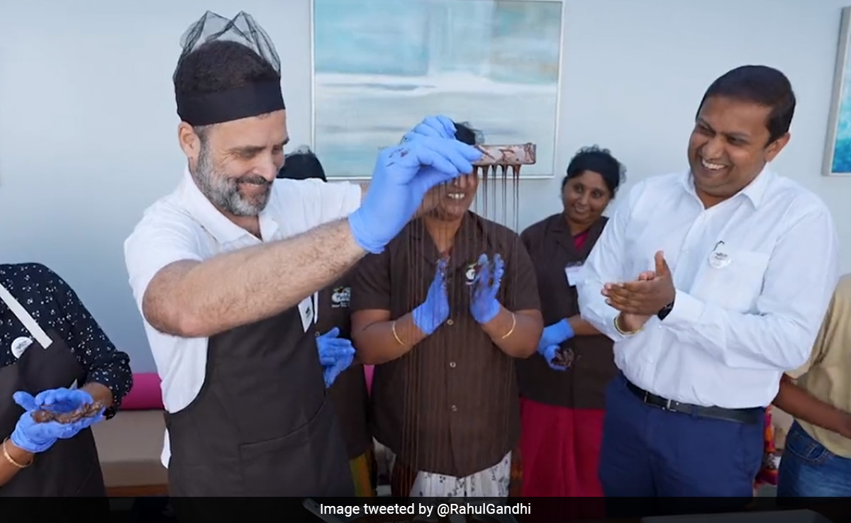 राहुल द्वारा साझा किए गए वीडियो में वह चॉकलेट बनाते हुए और फैक्टरी में काम करने वाली महिला कर्मचारियों से बातचीत करते हुए नजर आ रहे हैं.