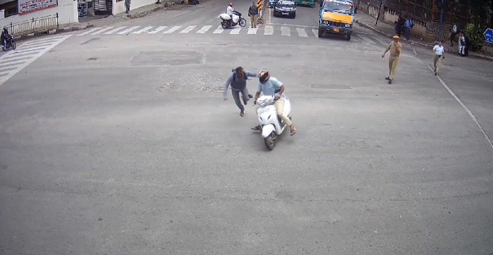 बेंगलुरु (Bengaluru) की एक व्यस्त सड़क पर मंगलवार को एक ऐसा दृश्य नजर आया जैसे कि किसी बॉलीवुड थ्रिलर का सीन हो. बेंगलुरु के एक पुलिसकर्मी ने चोर को पकड़ने के लिए दोपहिया वाहन के आगे कूदकर अपनी जान जोखिम में डाल दी. यह घटना सीसीटीवी कैमरे में कैद हो गई.