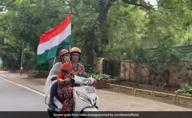 वीडियो में ईरानी लाल साड़ी पहने हुए दिखाई दे रही हैं. उन्हें हेलमेट और चश्मा पहने देखा गया. वहीं, स्वास्थ्य राज्य मंत्री पवार स्कूटी पर पीछे बैठी दिख रही हैं और उनके हाथों में राष्ट्रीय ध्वज है. केंद्र सरकार और भाजपा 'हर घर तिरंगा' अभियान चलाकर आजादी के 75 साल पूरे होने का जश्न मना रही है. उपराष्ट्रपति एम वेंकैया नायडू ने केंद्रीय मंत्रियों प्रल्हाद जोशी और पीयूष गोयल के साथ मंगलवार को लाल किले से सांसदों के लिए तिरंगा बाइक रैली को हरी झंडी दिखाकर रवाना किया.