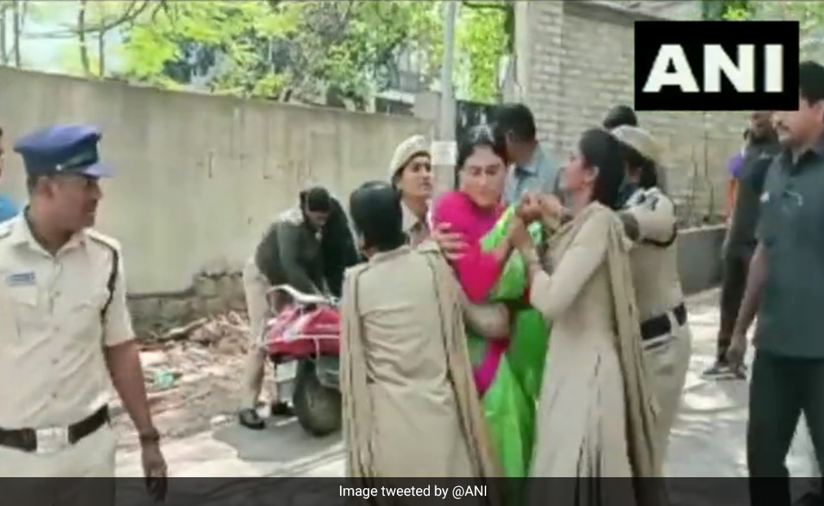 बाद में, तस्वीरों में शर्मिला की मां वाईएस विजयम्मा को पुलिस कर्मियों के साथ धक्का-मुक्की करते हुए देखा गया. विजयम्मा, शर्मिला से मिलने के लिए हैदराबाद के जुबली हिल्स पुलिस स्टेशन पहुंची थी.