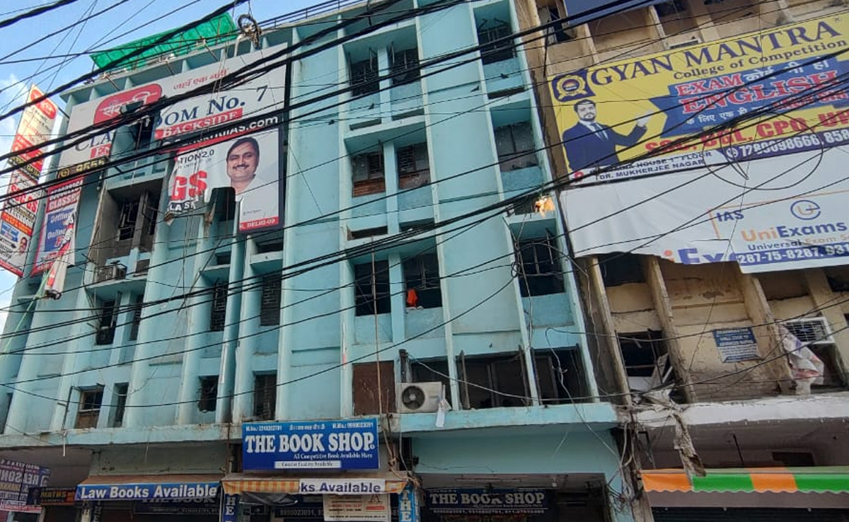 मुखर्जीनगर स्थित जिस बिल्डिंग में लगी थी आग