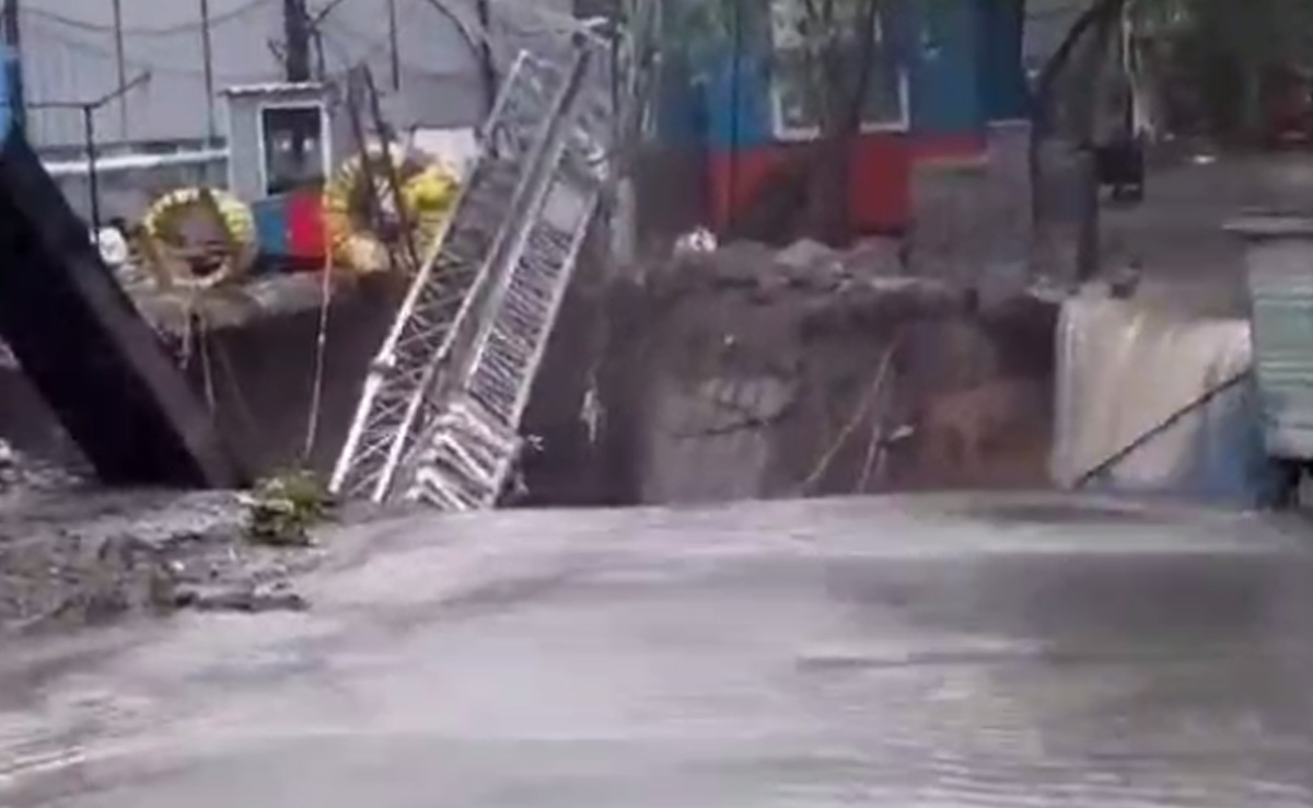 यह गड्ढा इतना बड़ा है कि बारिश के कारण बहकर आने वाले पानी के साथ एक के बाद एक कई चीजें इसमें समाती जा रही हैं. वहीं कुछ लोग यह दृश्य देखते नजर आते हैं और फिर आगे बढ़ जाते हैं.