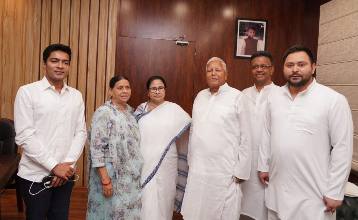 बैठक में हिस्सा लेने के लिए पश्चिम बंगाल की मुख्यमंत्री ममता बनर्जी (Mamta Banerjee) और अभिषेक बनर्जी बुधवार को पटना पहुंचे. पटना में ममता बनर्जी ने RJD प्रमुख लालू प्रसाद यादव, उनकी पत्नी राबड़ी देवी और राज्य के उपमुख्यमंत्री तेजस्वी यादव से मुलाकात की. इस दौरान राबड़ी देवी ने ममता बनर्जी का स्वागत किया वहीं ममता बनर्जी ने लालू प्रसाद यादव के पैर छू कर उनका आर्शिवाद लिया.