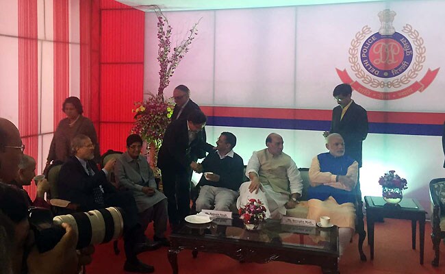 किरण बेदी यहां बतौर पूर्व पुलिस अधिकारी पहुंचीं तो अरविन्द केजरीवाल मुख्यमंत्री के नाते। "जब वी मेट" पल तब आया जब किरण बेदी, प्रधानमंत्री नरेंद्र मोदी से मिलने स्टेज पर गईं। उससे पहले केजरीवाल वहीं बैठे हुए थे। गृहमंत्री राजनाथ सिंह ने किरण बेदी को भी बैठने का इशारा किया और वह "कोडक मोमेंट" आया जिसका सब इंतज़ार कर रहे थे।