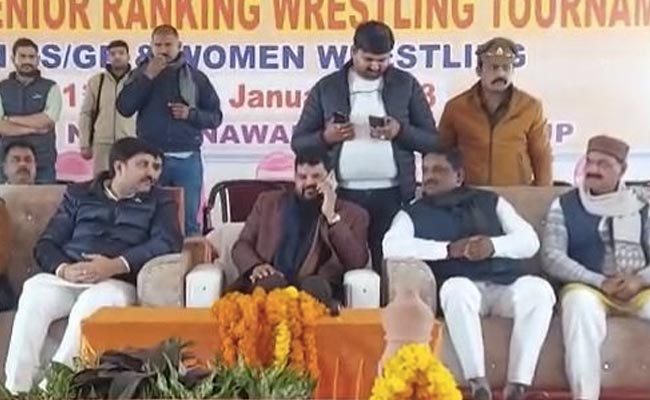 देश के नामी पहलवानों के आरोपों में घिरे भारतीय कुश्ती महासंघ (डब्ल्यूएफआई) अध्यक्ष बृजभूषण शरण सिंह आज गोंडा के नन्दिनी नगर स्टेडियम में हो रहे ओपन नेशनल चैंपियनशिप में पहुंचे. यहां वह मंच पर बैठे दिखाई दिए. रास्ते में कैमरे को देख बृजभूषण शरण सिंह ने कहा, "चलिए भाई, वहीं कुश्ती में चलिए."