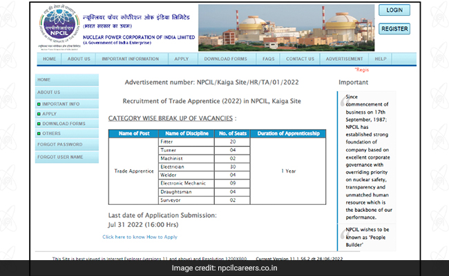 NPCIL Recruitment 2022: नुक्लियर पावर कॉरपोरेशन ऑफ़ इंडिया लिमिटेड ने कई रिक्त पदों पर भर्ती के लिए आवेदन पत्र जारी किया है. पात्रता और योग्यता को पूरा करने वाले उम्मीदवार ऑफिशियल वेबसाइट https://npcilcareers.co.in/ पर जाकर आवेदन पत्र भर सकते हैं. फिटर, टर्नर, मशीनिस्ट, वेल्डर, इलेक्ट्रॉनिक मैकेनिक, ड्राफ्ट्समैन और सर्वेयर के रिक्त पदों को भरने के लिए इस भर्ती प्रक्रिया की शुरुआत की गई है. उम्मीदवारों को यह ध्यान देना चाहिए कि आवेदन करने की अंतिम तारीख 31 जुलाई 2022 से पहले तक ही आवेदन स्वीकार किए जाएंगे.
