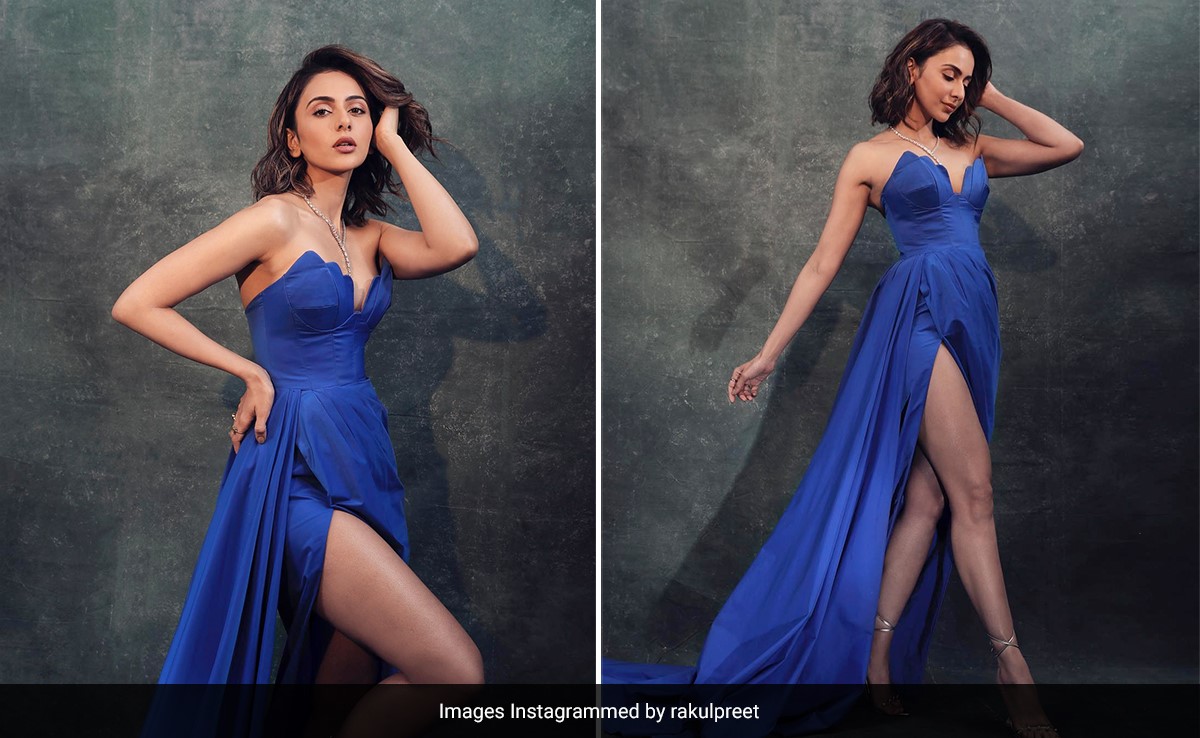 - रॉयल ब्लू स्ट्रैपलेस गाउन में रकुल प्रीत सिंह का अंदाज कमाल का है