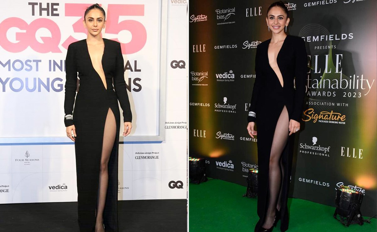 बॉलीवुड एक्ट्रेस रकुल प्रीत सिंह अपनी ग्लैमरस और खूबसूरत तस्वीरों की वजह से हमेशा हमारा ध्यान खींचती हैं. एक्ट्रेस अपनी बेहतरीन एक्टिंग के साथ-साथ अपने शानदार फैशन स्टाइल के लिए भी जानी जाती हैं. रकुल प्रीत हर आउटफिट को शानदार तरीके से कैरी करना जानती हैं. यही वजह है कि उनकी फैन फॉलोइंग में लगातार इतना इजाफा हो रहा है. एक्ट्रेस ने हाल ही में शहर में आयोजित अवॉर्ड सेरेमनी के लिए एक ऑल-ब्लैक गाउन पहना था. दिवा ने एले के सस्टेनेबिलिटी अवॉर्ड्स 2023 और जीक्यू मोस्ट इन्फ्लुएंशियल यंग इंडियन अवॉर्ड्स में शिरकत की और दोनों इवेंट्स के लिए सेम ब्लैक कटआउट गाउन पहना. रकुल प्रीत सिंह इस आउटफिट में हमेशा की तरह बेहद खूबसूरत लग रही थीं. ड्रामेटिक थाई-हाई साइड स्लिट ने उनके लुक को और स्टाइलिश बनाने का काम किया. रकुल की एक्सेसरीज में स्टडेड डैंगलिंग ईयरिंग्स, स्टेटमेंट रिंग्स और ब्रेसलेट्स शामिल थे. कोलह-रिमेड आईज, विंग्ड आईलाइनर, एम्पल मस्कारा, डेवी मेकअप और ग्लॉसी लिप टिंट रकुल के स्टाइलिश लुक को कॉम्प्लीमेंट कर रहे थे.