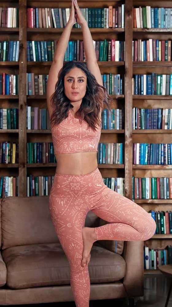 करीना का अपडोस हेयर स्टाइल उनका फेवरेट है. वह अकसर इसमें वर्कआउट करते नजर आती हैं. फोटो में उन्होंने स्पोर्ट ब्रा के साथ टाइट फिट बॉटम कैरी किया है.