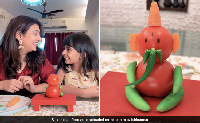 Ganesh Chaturthi 2022: गणेश चतुर्थी पर भक्त पूरे मनोभाव से घर में भगवान गणेश की स्थापना करते हैं. इस पर्व की खासियत है कि इसमें श्रद्धा और विश्वास को सबसे ऊपर रखा जाता है और प्रकृति को ध्यान में रखते हुए को जितने इको-फ्रेंडली (Eco-friendly) तरीके से मनाया जा सके उतने की कोशिश की जाती है. टीवी जगत की मशहूर एक्ट्रेस जूही परमार (Juhi Parmar) भी बप्पा को घर में विराजती हैं लेकिन उनका तरीका थोड़ा अलग है. अपनी लेटेस्ट वीडियो (Video) में वे अपनी बेटी के साथ सब्जियों से गणपति (Vegetable Ganpati) बनाते हुए दिख रही हैं. आप भी जूही की ही तरह घर में गणपति बनाकर इको-फ्रेंडली गणेश चतुर्थी मना सकते हैं.