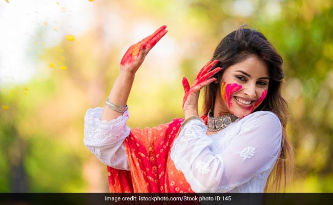 अपने दोनों हाथों में कोई चटक सा रंग ले लें. आप लाल, पीला, नीला या गुलाबी कोई भी रंग ले सकती हैं. कैमरामैन को कहें कि उसके लैंस का फोकस सीधा आपके चेहरे पर पड़े. इसके बाद खिलखिलाते हुए हंसे और खुदको रंग लगाते हुए हाथों को चेहरे पर रखें.
