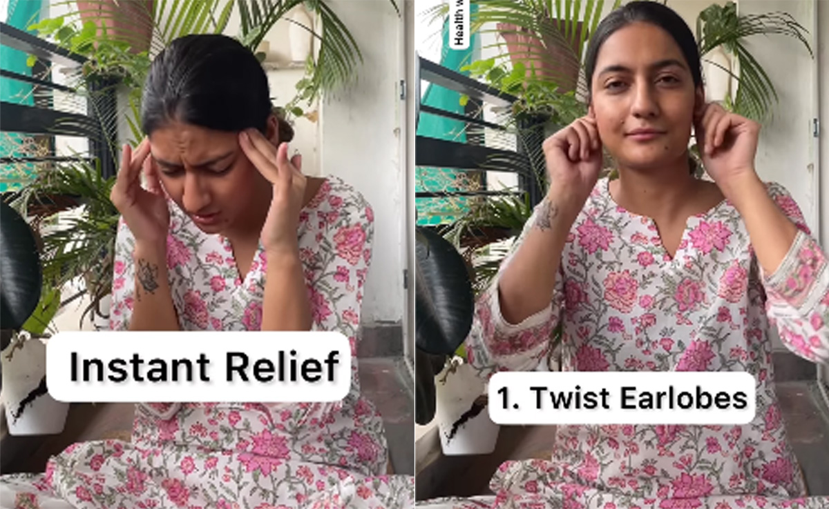 - महक खन्ना वीडियो में पहला टिप्स बताती हैं जब आपको माइग्रेन का दर्द उभरे तो अपने ईयरलोब्स (earlobes) को मरोड़िए या ट्विस्ट करिए, कुछ सेकेंड के लिए. इसके अलावा दूसरा तरीका है ईयरलोब्स को नीचे की तरफ खींचिए सॉफ्टली और तीसरा तरीका है कानों को नीचे की तरफ खींचते हुए आप झूठी जमाई लीजिए. इसके अलावा इस सिरदर्द में आप कानों को मसाज (ear massage) दीजिए. इन सारे ट्रिगर मसाज से आपको असहनीय सिर दर्द से आराम मिल जाएगा.