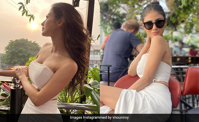 - मौनी रॉय व्हाइट कलर के आउटफिट में बेहद खूबसूरत लग रही थीं