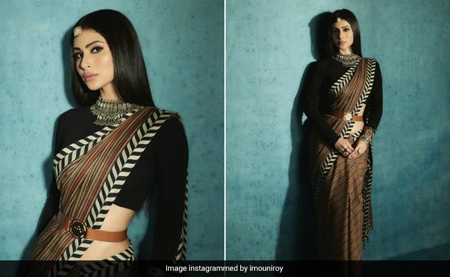मौनी की यह साड़ी जेजे वाल्या ने डिजाइन किया हुआ था. इस साड़ी में ब्लैक और व्हाइट पट्टी का बॉर्डर बना हुआ था, जो इसे और स्टाइलिश दिखाने में पूरी मदद कर रहा था. साड़ी को मौनी ने फुल स्लीव वाले ब्लैक ब्लाउज और वेस्ट बेल्ट के साथ पेअर किया हुआ था, जो उनको एक ग्लैमरस लुक दिखा रहा था. इसके साथ मौनी ने मेकअप न्यूड रखा हुआ था और बालों को साइड पार्टीशन करके खुला ही छोड़ दिया था.