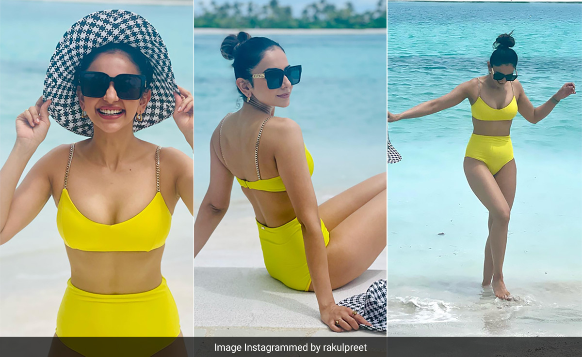 - रकुल प्रीत सिंह येलो स्विम सेट में हमेशा की तरह स्टनिंग लग रही हैं