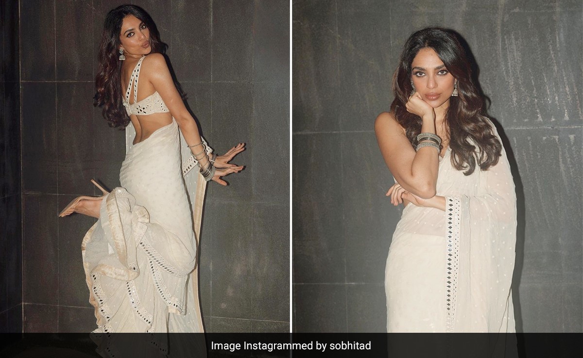 - शोभिता धूलिपाला आइवरी साड़ी में स्टनिंग लग रही हैं