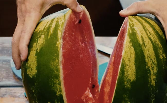 तरबूज की स्किन (Watermelon Skin) यानि ऊपरी हिस्सा बुझे हुए रंग का होना चाहिए चमकदार नहीं. बुझे हुए रंग का तरबूज अच्छा और मीठा निकलेगा.