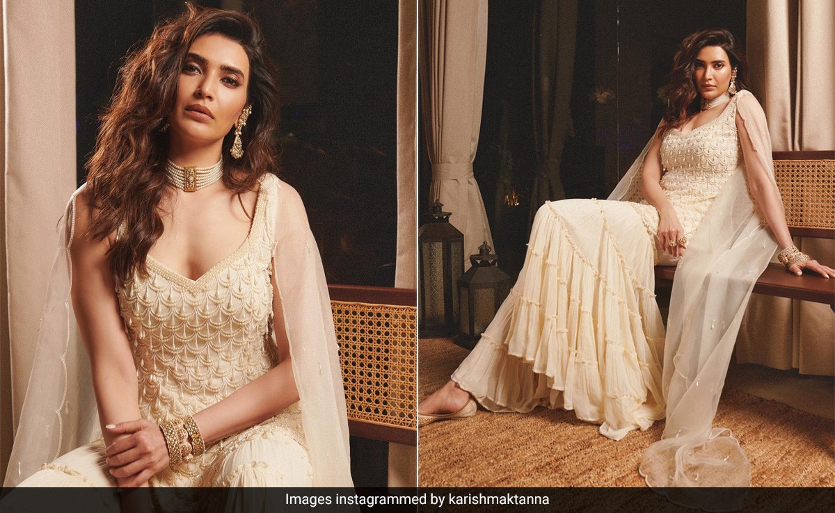 क्लोथिंग ब्रांड रीति अरनेजा से करिश्मा का आइवरी लुक हर तरह से शानदार था. एक्ट्रेस के इस आउटफिट में प्लंजिंग नेकलाइन के साथ पूरी तरह से एम्ब्रॉएडर्ड इन-कट ब्रैलेट ब्लाउज़ और कंधों पर नेट जैकेट के साथ प्लीटेड शरारा पैंट शामिल था. एक्सेसरीज की बात करें तो उन्होंने नेकलेस, झुमके और ब्रेसलेट्स पहने थे जबकि अपने बालों को उन्होंने पोनीटेल लुक दिया और न्यूड मेकअप से उन्होंने अपने लुक को पूरा किया था.