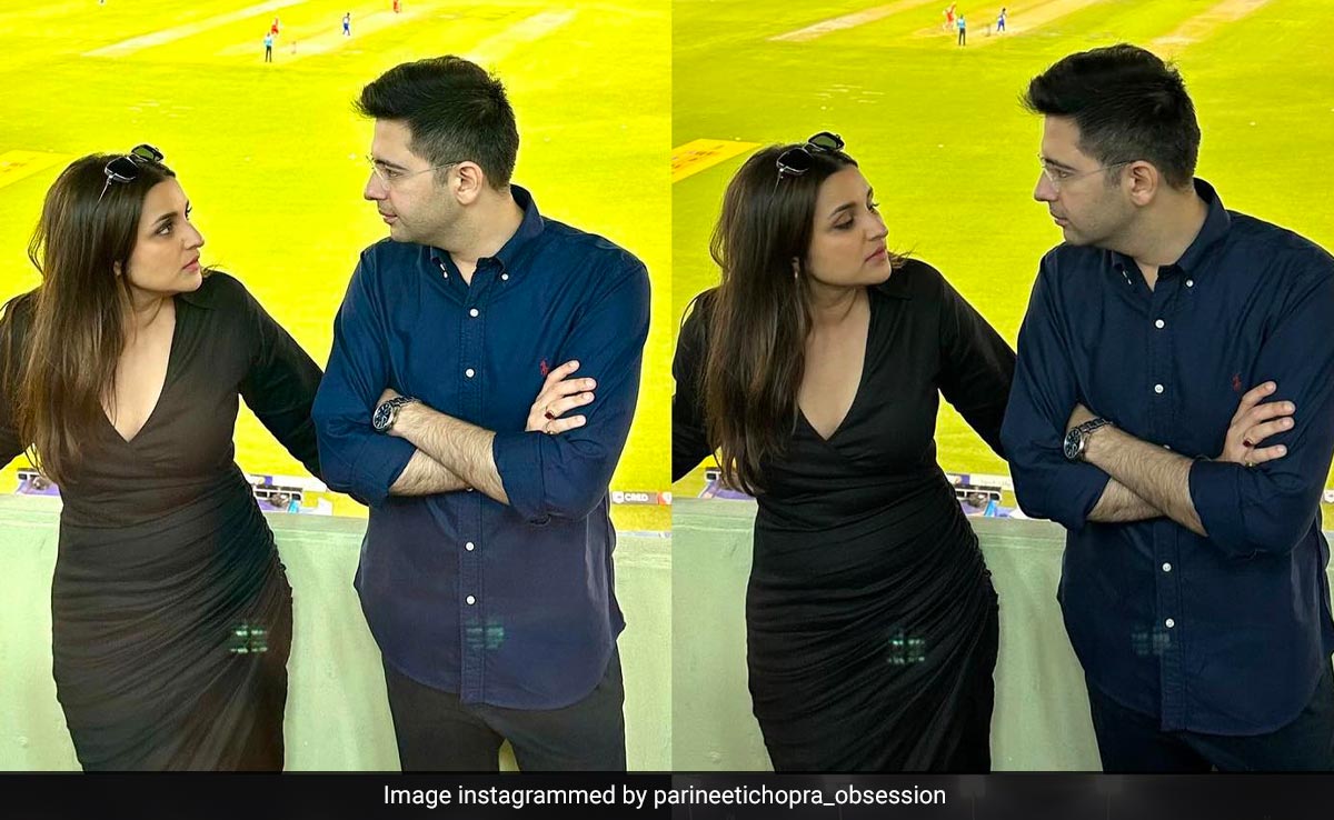इस फोटो में आप देख सकते हैं परिणीति ने काले रंग की वी नेक ड्रेस पहनी है जिसको सन ग्लास से पेअर किया है. वहीं राघव ने ब्लू रंग की शर्ट ब्लैक जींस के साथ पहना है. इस लुक में दोनों बेहद स्टाइलिश लग रहे हैं. यह फोटो दोनों की मोहाली में मैच देखते समय की है.