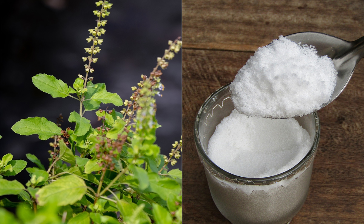 Tulsi me namak dalne ke fayde : तुलसी पौधे का न सिर्फ धार्मिक बल्कि वैज्ञानिक महत्व भी है. यही कारण है कि लोग घर में सुख शांति और समृद्धि बनाए रखने के लिए तुलसी को जल चढ़ाते हैं और सेहत खराब होने पर इसकी पत्तियों से काढ़ा बनाकर भी पीते हैं. इसलिए हर घर के आंगन या बालकनी में तुलसी का पौधा जरूर होता है. लेकिन कुछ लोगों की शिकायत होती है कि सही देख रेख करने के बावजूद तुलसी सूख जाती है. ऐसे में हम आपको यहां पर बताने जा रहे हैं कैसे नमक के इस्तेमाल से तुलसी को हरा-भरा सकते हैं.