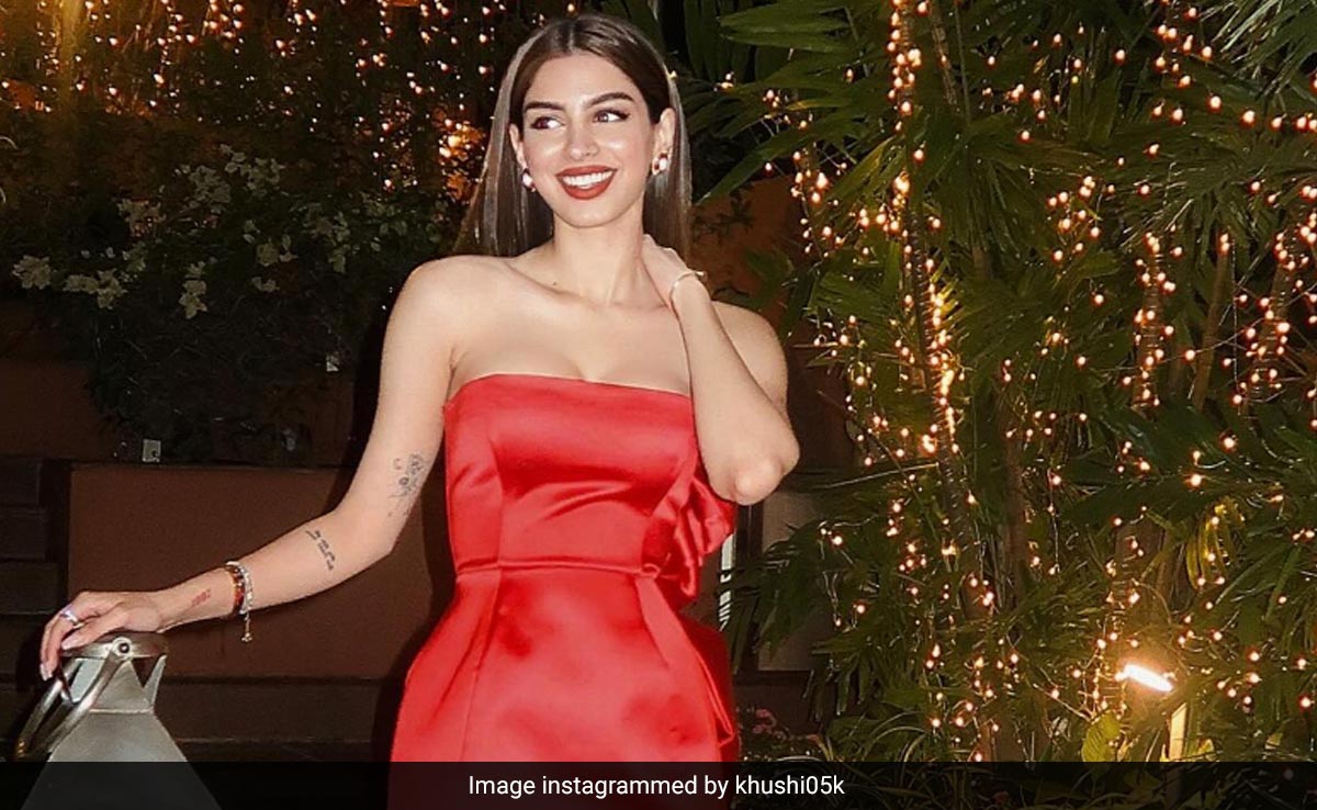 खुशी कपूर का यह लुक वैलेंटाइंस डे पर कैरी करने के लिए परफेक्ट है. खुशी ने इस रेड ड्रेस के साथ बोल्ड रेड कलर के हील्स पहने हैं और लिपस्टिक भी रेड ही लगाई है. अपने लुक को ग्लेमरस बनाते हुए खुशी ने ग्लिटरी मेकअप किया है और कानों में स्टड्स और कलाई पर ब्रेस्लेट कैरी किया है.