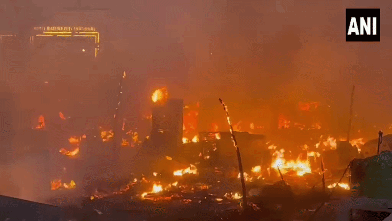 - फायर ब्रिगेड की बीस से अधिक गाड़ियां मौके पर पहुंचीं, लेकिन आग बुझाने में मुश्किल आ रही है
