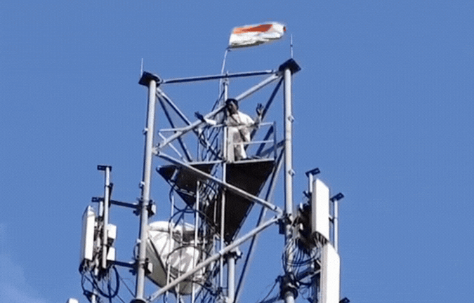 जानकारी के अनुसार, अशोकनगर जिले के खागलपुर गांव का रहने वाला लक्ष्मीनारायण लोधी रविवार 1 मार्च 2026 को 150 फीट से अधिक ऊंचे टावर पर चढ़ गया. युवक तिरंगा झंडा लेकर टावर पर चढ़ा था, जिसे वह ऊपर से फहरा रहा था. साथ ही उसने अपना मांग पत्र चिपका दिया. घटना की सूचना मिलते ही मौके पर ग्रामीणों की भीड़ जमा हो गई. लोगों पुलिस ने पुलिस को सूचना दी. कुछ देर बाद पुलिस के अधिकारी भी मौके पर मौके.