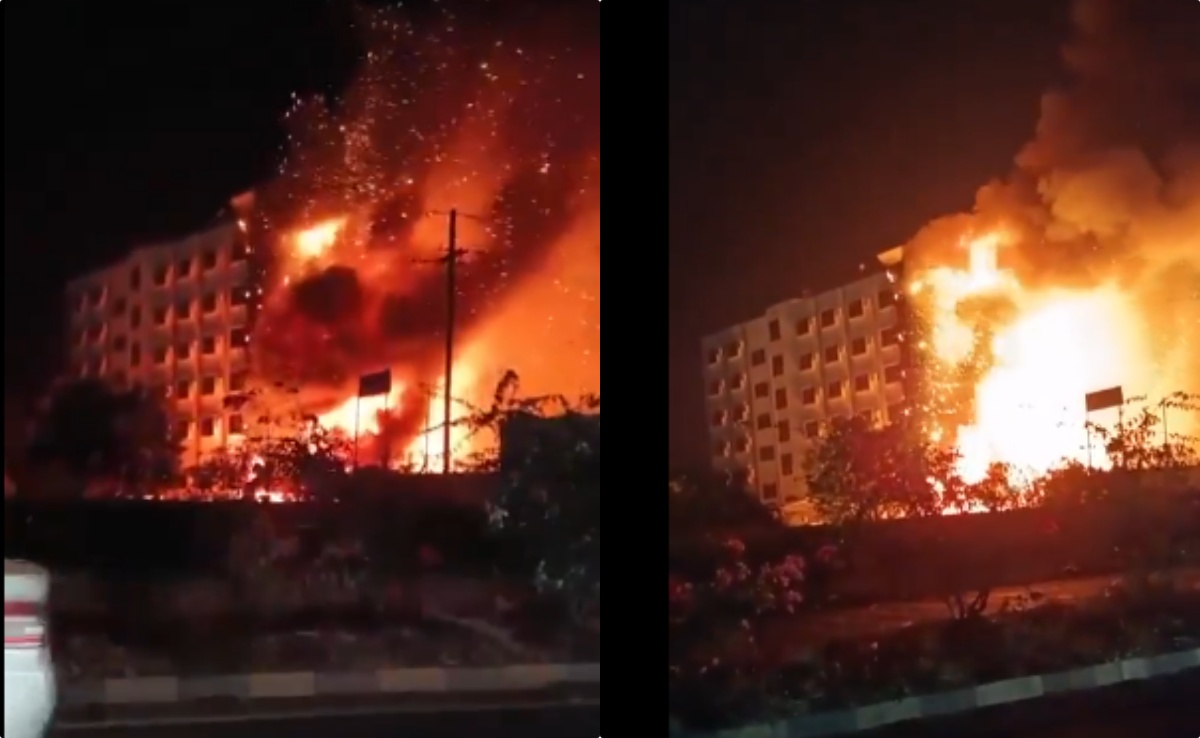 सोशल मीडिया पर होटल में आग लगने का जो वीडियो सामने आया है, उसमें दिखाई दे रहा है कि सड़क से थोड़ी दूरी पर होटल में भीषण आग लगी हुई है. होटल आग की खतरनाक लपटों से घिरा हुआ है. आसमान में धुएं का गुबार भी उठा नजर आ रहा है. आग होटल की कई मंजिल तक तेजी से फैली. जिससे होटल का एक हिस्सा पूरा का पूरा आग के गोले में तब्दील हो चुका है. पास ही रोड से गाड़ियां गुजरती दिखाई दे रही है.