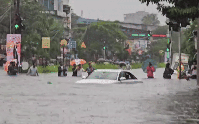 मुंबई का बारिश से कितना बुरा हाल है, इस बात का अंदाजा तस्वीरों और वीडियो से आसानी से लगाया जा सकता है. सड़कों पर कमर तक पानी भरा हुआ है. मुंबई के एक इलाके में सड़क पर इतना पानी भर गया कि कार इसमें लगभग डूब गई.