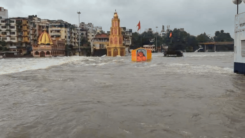नासिक और आसपास के इलाकों में लगातार हो रही लगातार बारिश के कारण गंगापुर बांध पूरी तरह से भर चुका है. इसकी वजह से कादवा नदी में पानी छोड़ा गया है. नासिक के कादवा नदी में पानी छोड़ने के कारण नदी का जलस्तर काफी बढ़ गया है. नासिक से जो वीडियो सामने आया है वो बेहद चौकाने वाला है. इस वीडियो में दिख रहा कि नदी का पानी बेहद तेज है और वह शहर के कुछ हिस्सों में घुस चुका है. नदी के बढ़े जलस्तर की वजह से कई मंदिरों में भी पानी घुस गया है.