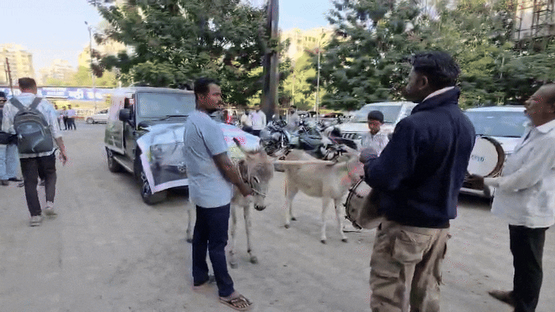 शख्स कार डीलर के खिलाफ अपना विरोध जताते हुए अपनी थार कार को दो गधों से खींचवाता हुआ कार शोरूम तक पहुंचा. कार का मालिक गणेश सांगडे अपनी कार की तकनीकी गड़बड़ियों क ठीक ना किए जाने से परेशान था. उनका दावा है कि उन्होंने कुछ महीने पहले ही गाड़ी खरीदी थी, लेकिन शुरुआत से ही इसमें पानी लीक होने, माइलेज कम होने और इंजन में तेज़ आवाज़ जैसी लगातार दिक्कतें आ रही थीं.