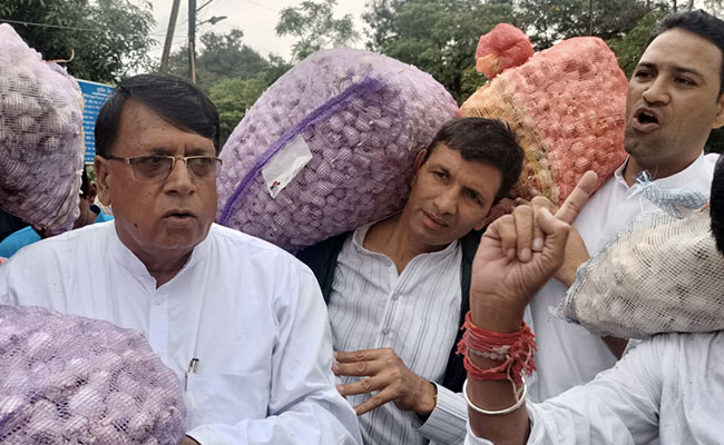 मध्यप्रदेश विधानसभा का मॉनसून सत्र 13 सितंबर मंगलवार से शुरू हो गया. 17 सितंबर तक चलने वाले इस सत्र के शुरू होने से पहले ही कांग्रेस ने सदन के बाहर जमकर हंगामा किया. विधानसभा के सामने कांग्रेस नेताओं ने लहसुन लेकर प्रदर्शन किया. कांग्रेस नेताओं ने लहसुन की बोरियों को विधानसभा के गेट पर फेंक दिया और सरकार पर जमकर आरोप लगाए.