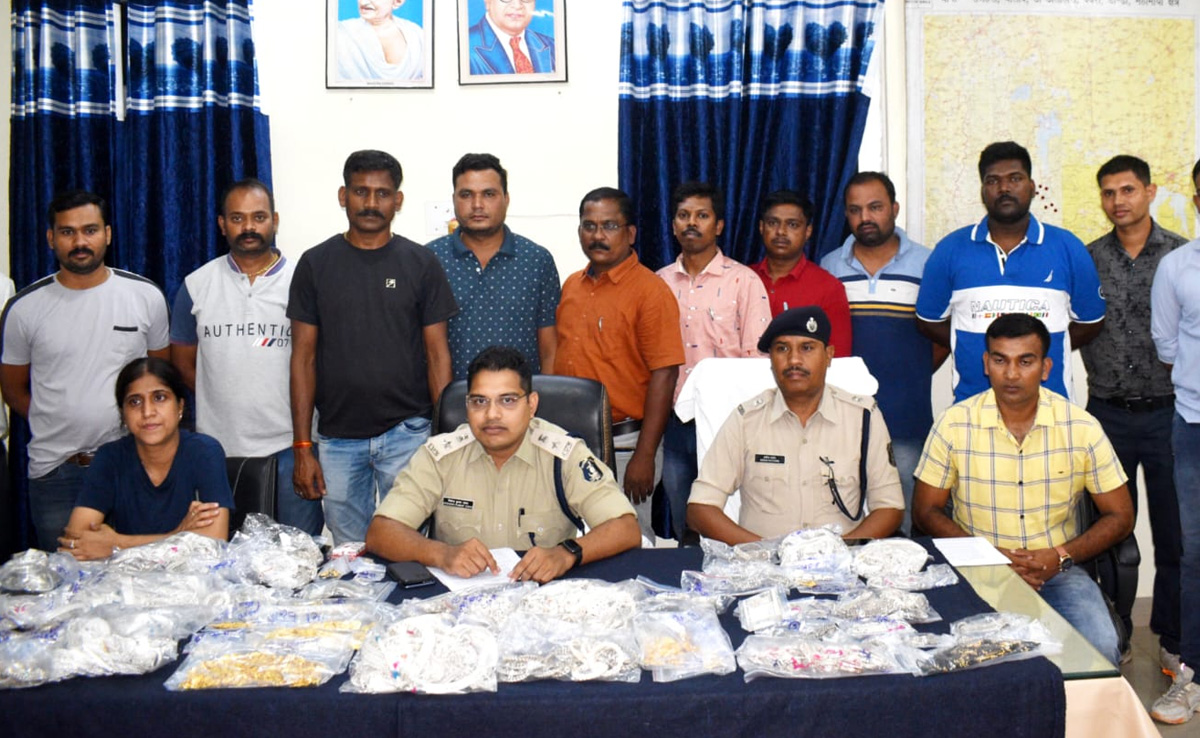 छत्तीसगढ़ के बालोद जिले के अर्जुन्दा नगर में स्थित बाफना ज्वेलर्स में करीब 95 लाख की चोरी को अंजाम देने वाले 12 आरोपियों को पुलिस ने गिरफ्तार कर लिया है. जिसका खुलासा एसपी जितेंद्र यादव ने एक प्रेस कॉन्फ्रेंस में किया. 25 जून को चोरी की इस घटना का पता चला था. चोरों ने दुकान के शटर को उठाकर कांच का शीशा तोड़ा, फिर दुकान के दराज में रखे हुए सोने-चांदी के जेवर और एक लाख 78 हजार रुपये नगदी रकम, सीसीटीवी कैमरा के डीवीआर, बिल और अन्य दस्तावेज़ चोरी किए थे. पुलिस ने आरोपियो के कब्जे से करीब 1 किलो 300 ग्राम सोने और 31 किलोग्राम चांदी के जेवर बरामद किए हैं, जिनकी कीमत 85 लाख के करीब है. वहीं घटना के दौरान इस्तेमाल की गई मोटर साइकिल, तवेरा कार, लोहे की रॉड भी बरामद कर ली गई है.