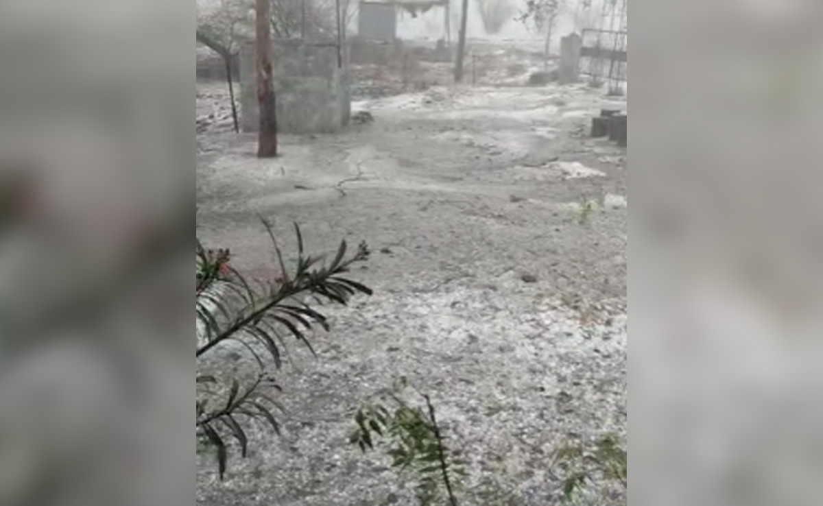 भारी ओलावृष्टि से सफेद हुई सड़क