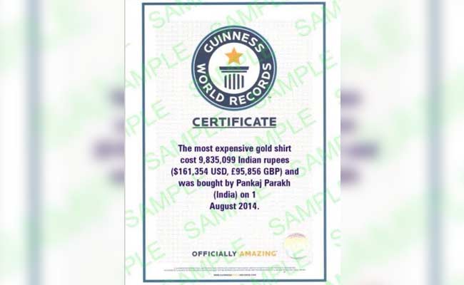 सोने के दीवाने पंकज पारेख का कारनामा उन्हें नामचीन बना गया है। नासिक के येवला तहसील के व्यापारी पंकज पारेख की 4 किलो की सोने की शर्ट गिनीज बुक ऑफ़ वर्ल्ड रिकार्ड्स में रजिस्टर हुई है। रिकार्ड्स के मुताबिक, यह दुनिया की सबसे महंगी शर्ट है।