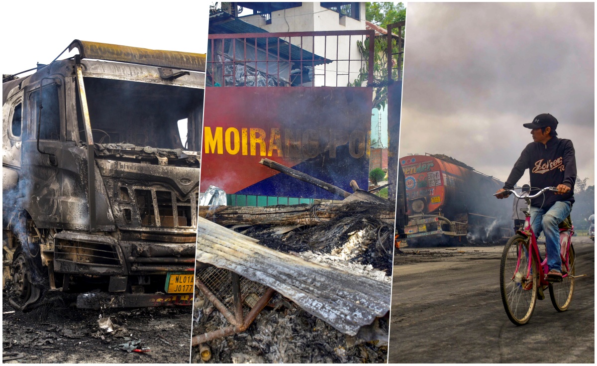 इस हमले के बाद स्थानीय लोगों में भारी आक्रोश फैल गया. सुबह होते ही लोग सड़कों पर उतर आए और विरोध प्रदर्शन शुरू कर दिया. प्रदर्शनकारियों ने इम्फाल‑टिडिम रोड को कई जगहों पर जाम कर दिया. सड़कों पर टायर जलाए गए, जिससे मुख्य मार्गों पर आग का धुआं उठता रहा. गुस्साए लोगों ने कम से कम तीन ट्रकों और दो तेल टैंकरों को आग के हवाले कर दिया. मोइरांग पुलिस स्टेशन के सामने भी टायर जलाए गए और एक अस्थायी पुलिस चौकी में तोड़फोड़ की गई. एएनआई के वीडियो में सड़कों पर जलते टायर, सुलगते ट्रक, आग की लपटें और बिखरा हुआ घरेलू सामान साफ देखा जा सकता है.
